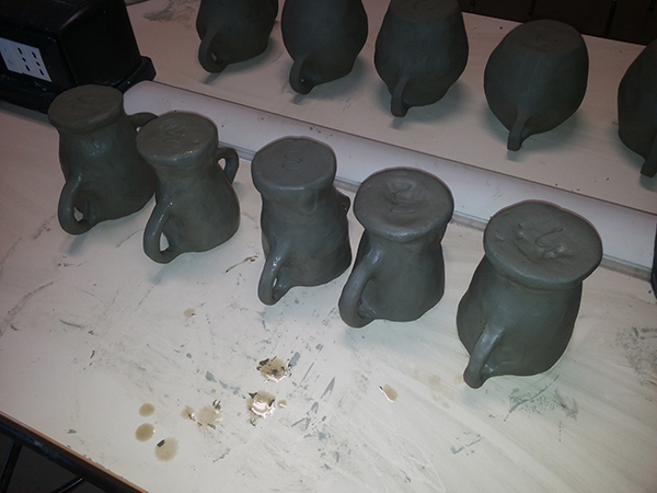 In occasione della giornata del “P greco” sono stati preparati dei trofei in argilla. Una terza media ha collaborato alla formatura dei trofei di tre diverse misure: 5 più grandi per i primi classificati, 5 di grandezza medi, a per i secondi classificati e 5 più piccoli, per i terzi classificati. I trofei sono stati “formati” con la tecnica a colombino, usata fin già nell’antichità, successivamente i “rotolini” sono stati lisciati fino a dare una forma compiuta, utilizzando vari strumenti come le stecche, la spugna bagnata per eliminare le rugosità e le imperfezioni. Infine i trofei di argilla così preparati sono stati posizionati sui tavoli del laboratorio artistico; a questo punto sono state aperte leggermente le finestre dello stesso onde consentire una leggera corrente d’aria, per consentire l’essiccamento della pasta argillosa.